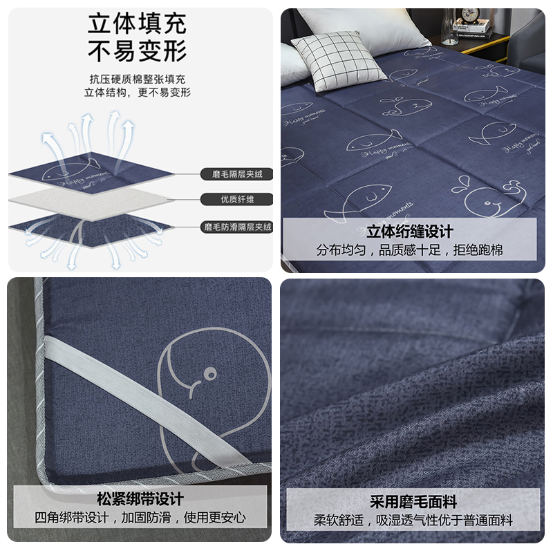 【超值单品】【四季通用】可折叠印花床垫【聚酯纤维/颜色自选(整张棉填充/可折叠)】