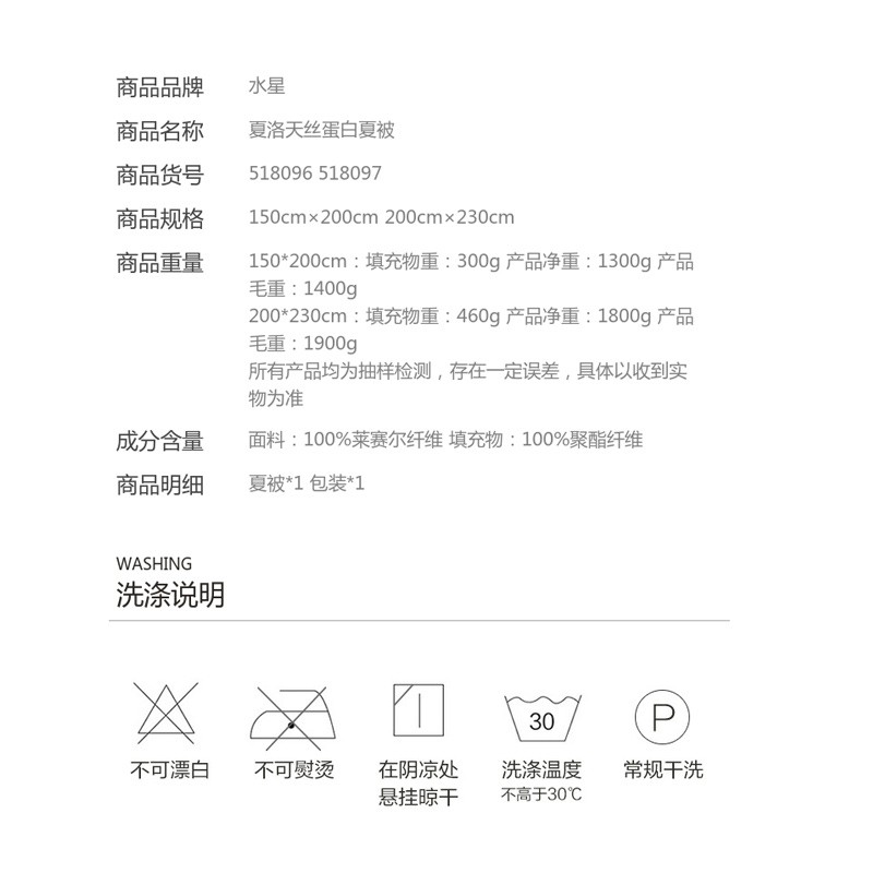 天丝蛋白夏被(夏被*1)【面料:100%莱赛尔纤维/夏洛天丝蛋白夏被】
