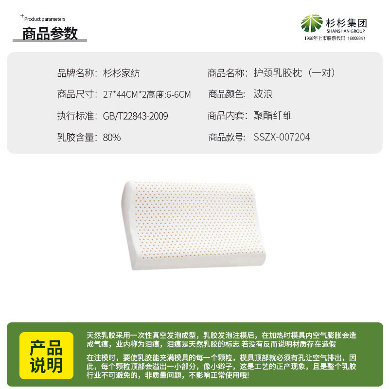 护颈乳胶枕(一对)【面料:聚酯纤维填充:80%天然乳胶/波浪】