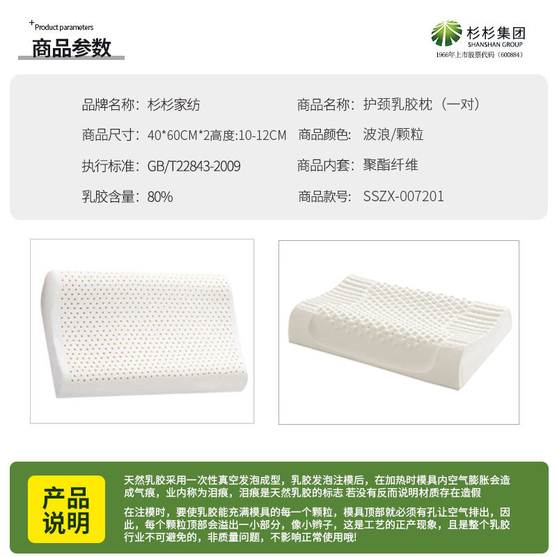 护颈乳胶枕(一对)【面料:聚酯纤维填充:80%天然乳胶/1】