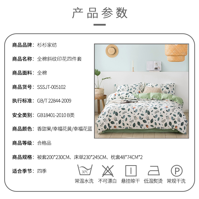全棉斜纹印花四件套【全棉/颜色自选】