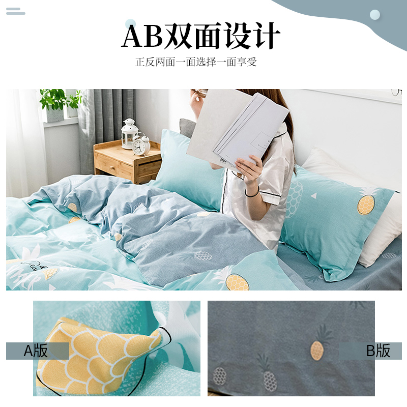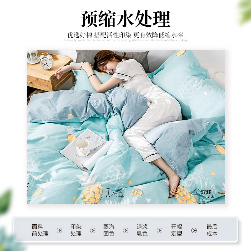 全棉斜纹印花四件套【全棉/菠萝物语-绿】