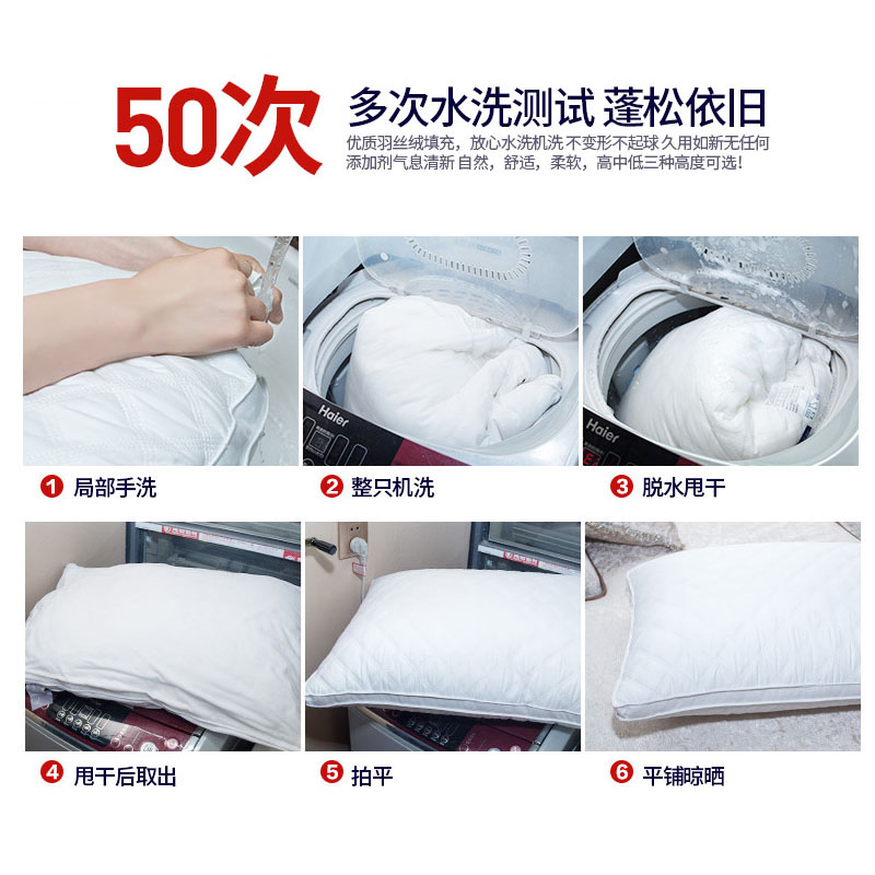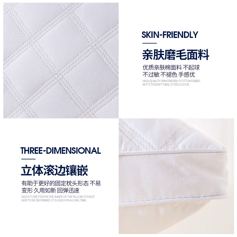 酒店风夹棉绗缝羽丝棉立体高枕【面料:聚酯纤维 填充:羽丝绒(100%聚酯纤维)/白色】