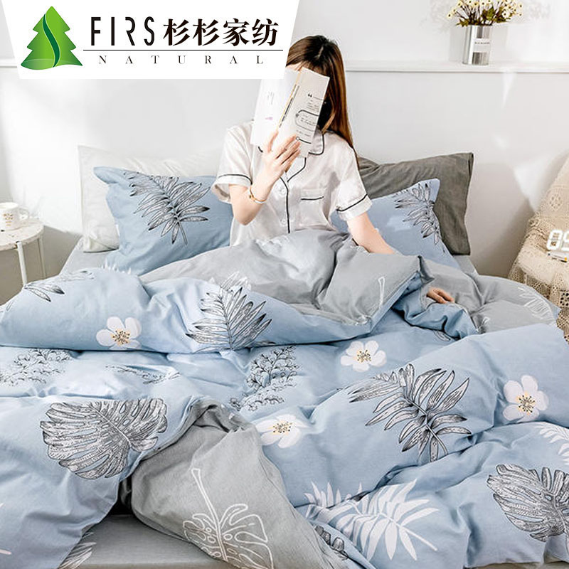 全棉小清新ins风四件套【全棉/夕颜花开灰】
