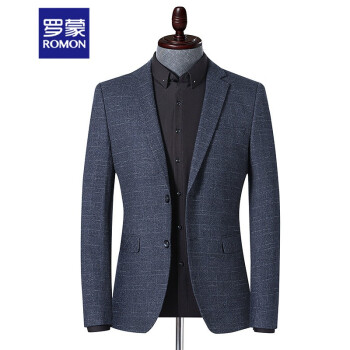 西服>>罗蒙(ROMON)休闲西服男韩版修身小西装单西外套男士秋季新款青中年商务休闲免烫男装结婚礼服 蓝灰 【9823两粒扣款】 175(建议120-135斤)