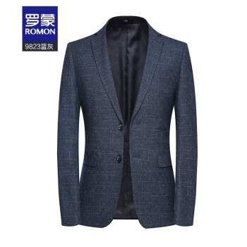 罗蒙(ROMON)休闲西服男韩版修身小西装单西外套男士秋季新款青中年商务休闲免烫男装结婚礼服 蓝灰 【9823两粒扣款】 175(建议120-135斤) |