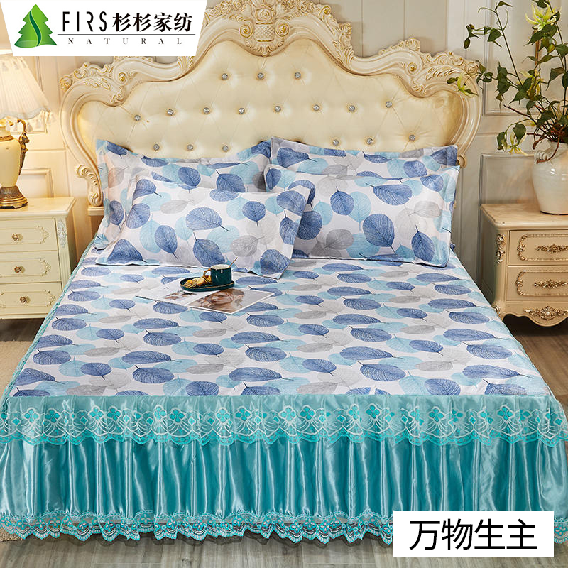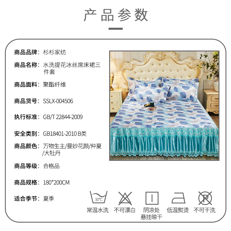 水洗提花冰丝席床裙三件套【聚酯纤维/颜色自选】