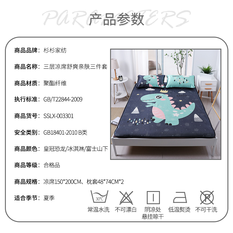 大版冰丝席凉席三件套【聚酯纤维/颜色自选】