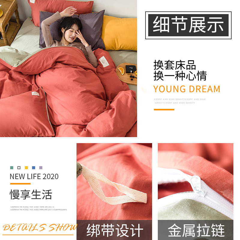 全棉色织水洗棉四件套【全棉/颜色自选】