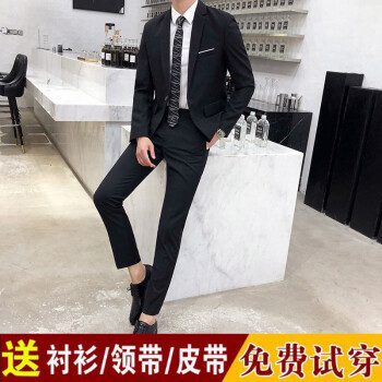 卡豪朗西服套装男2020四季新款商务休闲西装男韩版潮流职业正装小西装套装男绅士伴郎服新郎服结婚礼服 黑色(两件套) L