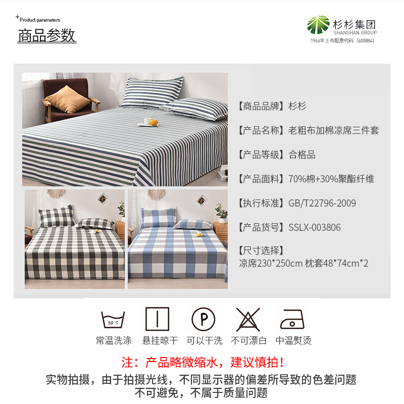 老粗布加棉凉席三件套【70%棉+30%聚酯纤维/颜色自选】