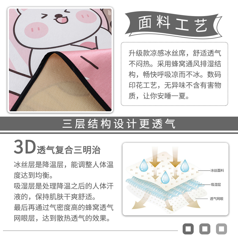 大版冰丝席凉席三件套【聚酯纤维/睡萌萌】