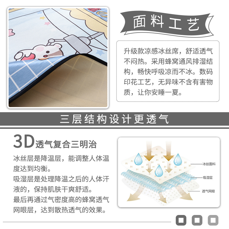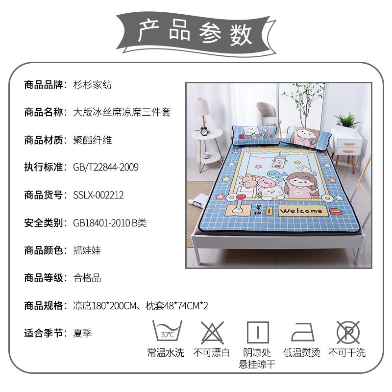 大版冰丝席凉席三件套【聚酯纤维/抓娃娃】