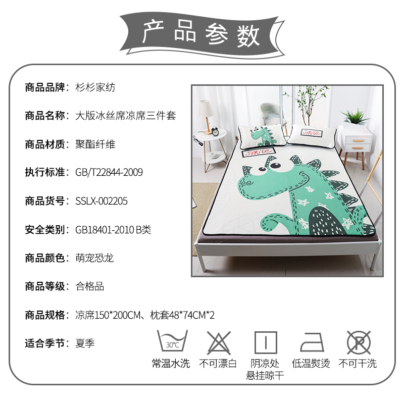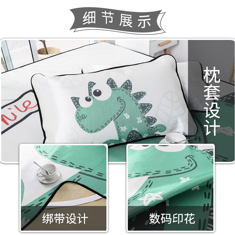 大版冰丝席凉席三件套【聚酯纤维/萌宠恐龙】