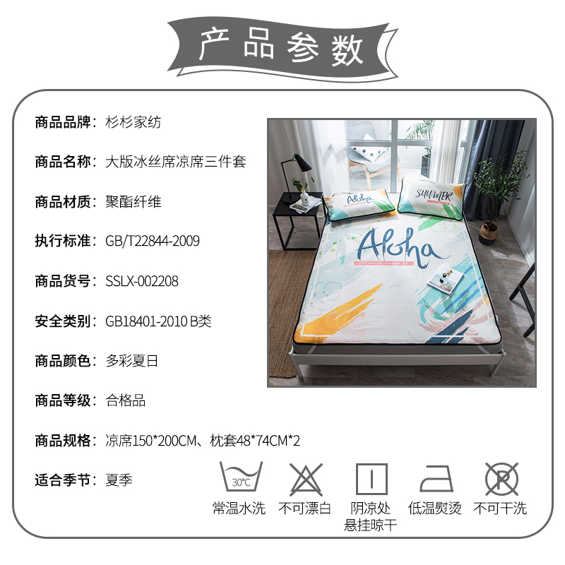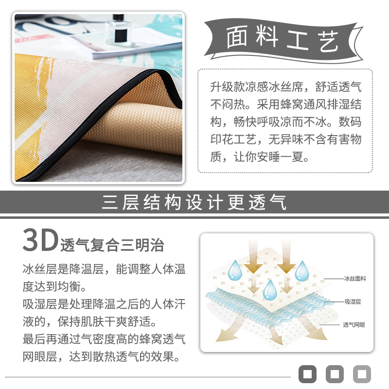 大版冰丝席凉席三件套【聚酯纤维/多彩夏日】