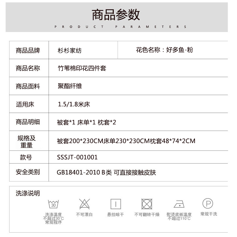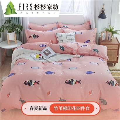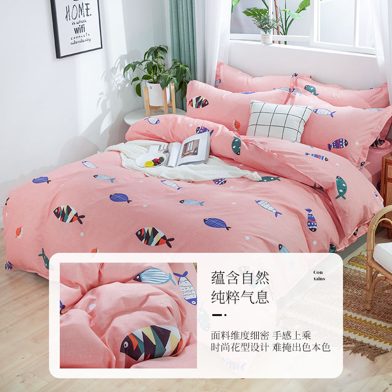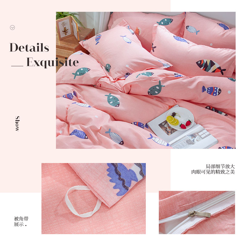 竹苇棉印花四件套【聚酯纤维/好多鱼-粉】