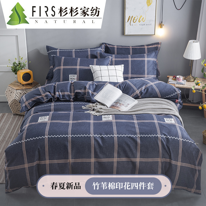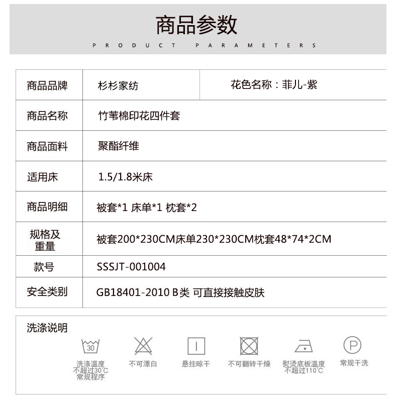 竹苇棉印花四件套【聚酯纤维/菲儿-紫】