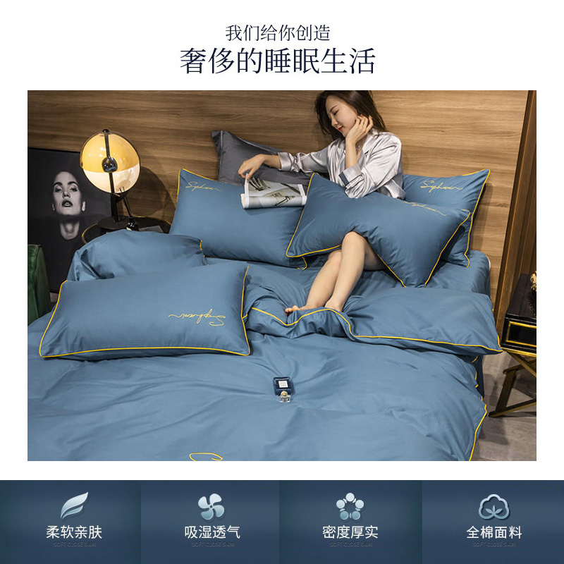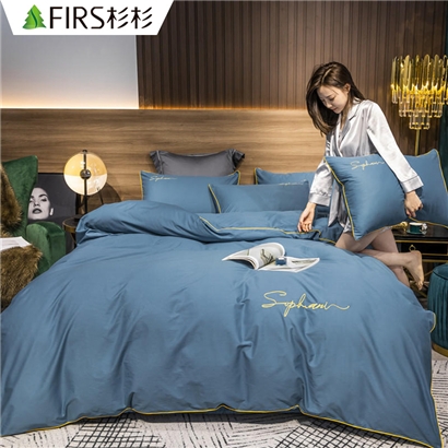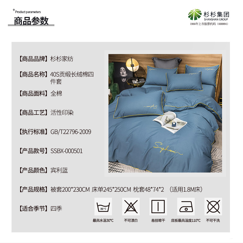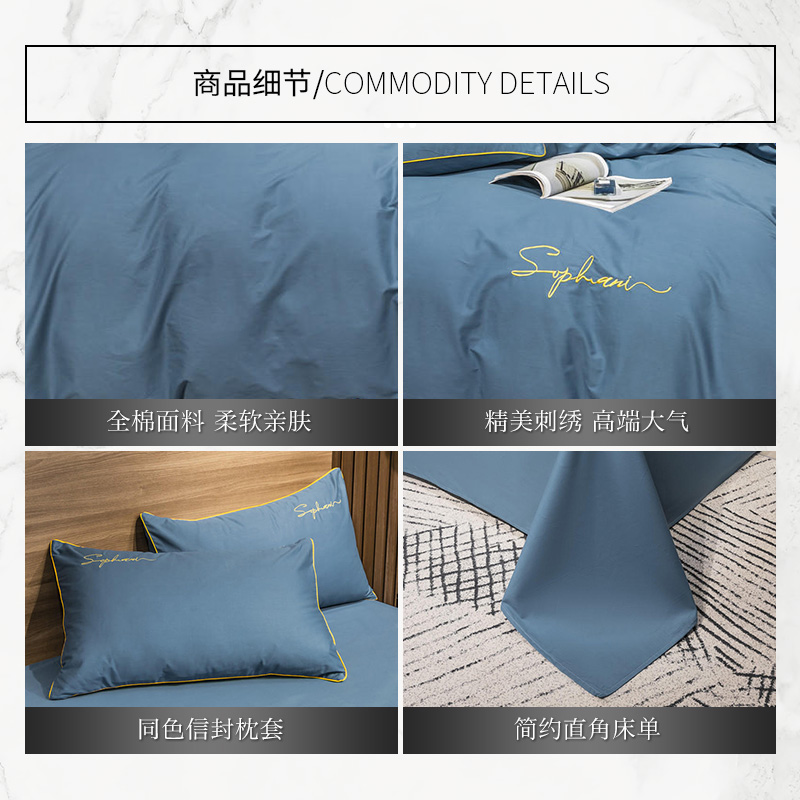 40s贡缎长绒棉四件套【全棉/宾利蓝】