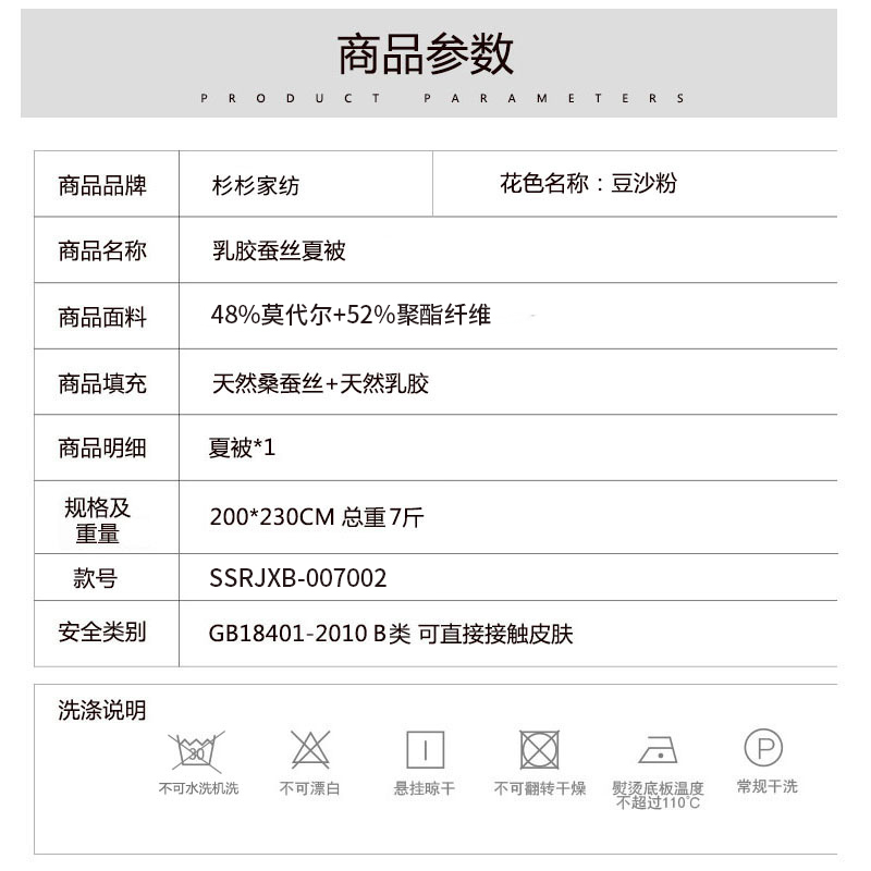 乳胶蚕丝夏被【面料:48%莫代尔52%聚酯纤维填充:天然桑蚕丝+天然乳胶/豆沙粉】