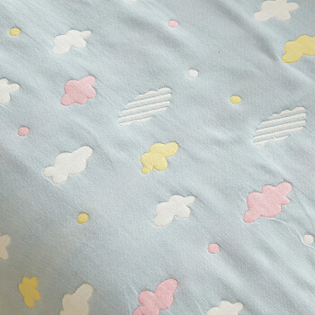 恒源祥 午睡空调被毛毯 纯棉三层纱布毛巾被全棉透气儿童夏凉盖毯子床单懒人毯 彩云蓝120×150cm