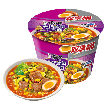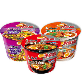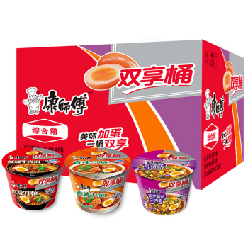 康师傅方便面双享桶红烧牛肉4桶+香辣牛肉2桶+酸菜牛肉2桶 卤蛋面桶面即食面整箱装休闲零食