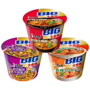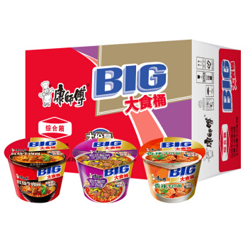 康师傅方便面大食桶红烧牛肉6桶+酸菜牛肉3桶+香辣牛肉3桶桶面泡面整箱装休闲零食 即食面