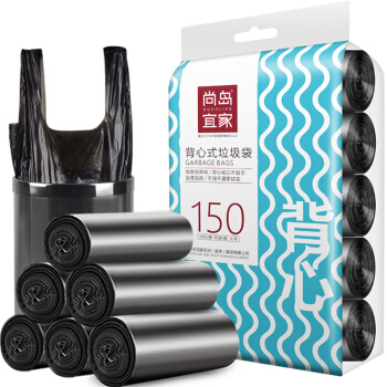 垃圾袋>>尚岛宜家 背心手提式垃圾袋 150只装 中大号加厚垃圾袋50*65cm*5卷 黑色 家用办公分类垃圾桶袋
