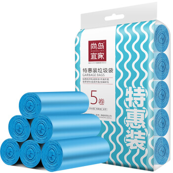 垃圾袋>>尚岛宜家 点断式垃圾袋 100只装 中号加厚45*50cm*5卷 平口蓝色 大垃圾袋 家用办公分类垃圾桶袋