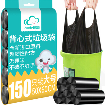 云蕾垃圾袋加厚背心手提式150只黑色中大号50*60cm分类家用厨余厨房清洁袋垃圾桶方便收纳袋 27371