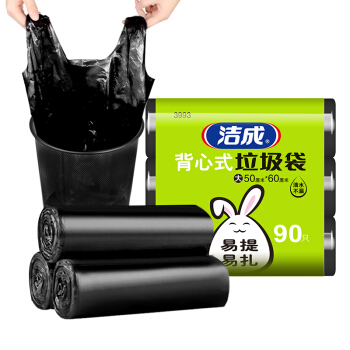 洁成加厚背心手提式垃圾袋90只 50cm*60cm*30只*3卷装 黑色大号家用办公塑料清洁袋