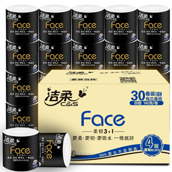 洁柔卷纸(C&S) 黑Face 加厚4层140g卫生纸巾*30卷(面子系列 柔韧升级母婴可用 冲厕易降解)整箱销售