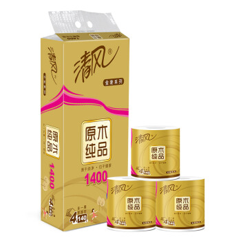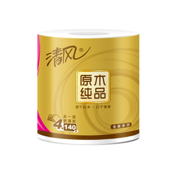 卷纸>>清风(APP)卷纸 原木纯品金装系列 4层加厚140克卫生纸巾10卷(母婴可用,柔软强韧 新老包装交替发货)
