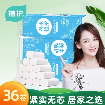 植护卷纸4层加厚36卷整箱装卫生纸巾 无芯卷纸抽家庭装家用实惠装