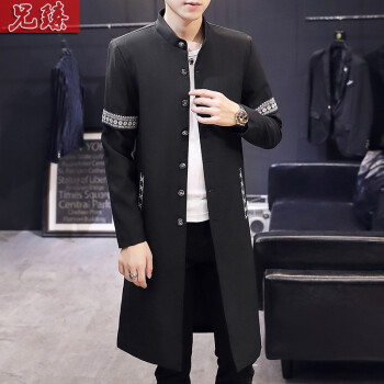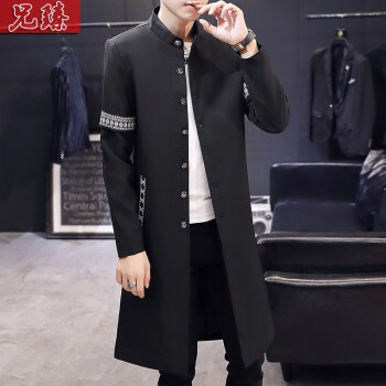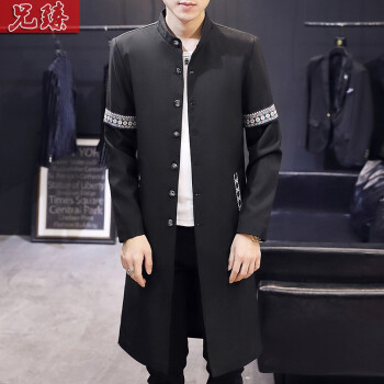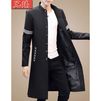 风衣>>兄臻 风衣男长款过膝韩版薄款春秋大衣 男士中长款披风潮流个性帅气百搭修身长外套秋季男装 DL906黑色 XL