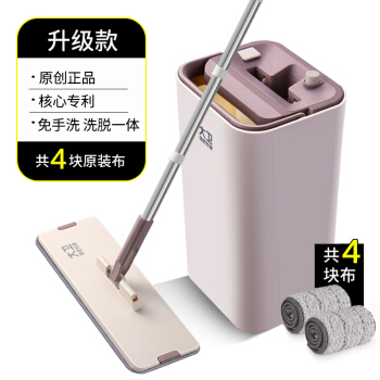 拓朴(TOPOTO)大卫免手洗平板拖把拓扑懒人木地板刮刮乐桶拖布清洁工具墩布干湿两用Z9 1杆4头