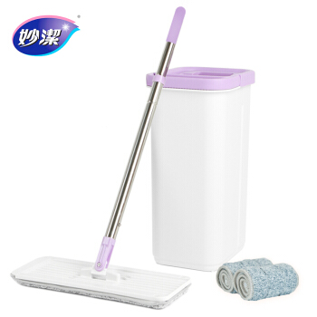 妙洁 刮刮桶刷刷乐 免手洗干湿两用平板拖把洗脱合一懒人拖布网红地拖 共2块替换布