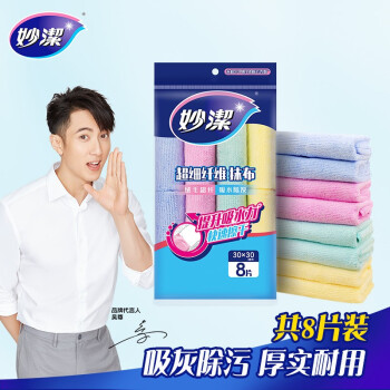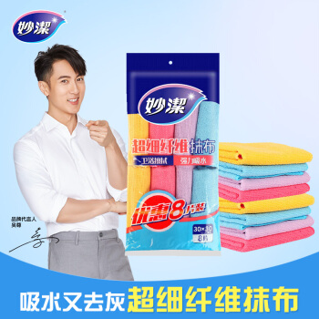妙洁超细纤维抹布 清洁布厨房擦桌子巾玻璃杯地不掉毛吸水干净用品工具 8片装