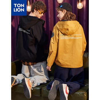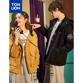 唐狮2020春新款外套 情侣工装连帽风衣夹克风衣 男款/黑色 L
