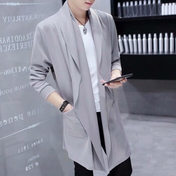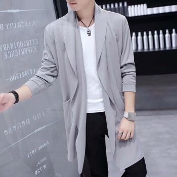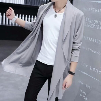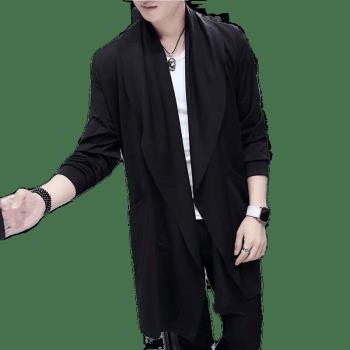 离梢夏季薄款冰丝连帽风衣男中长款2020春夏新款帅气韩版青年学生披风外套潮流防晒衣服 黑色 L |