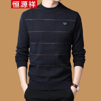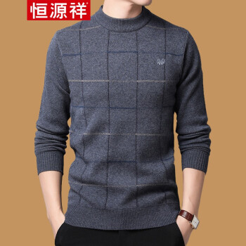 恒源祥 毛衣 男士中青年2019秋冬新品圆领套头针织衫 加厚保暖休闲简约男装打底毛衫 H7818中灰 170推荐120-140斤