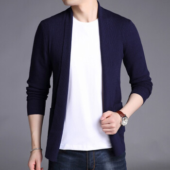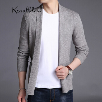 卡搭品牌轻奢男装开衫男毛衣外套夏季长袖韩版休闲男装针织衫春秋纯色修身潮流线衫 灰色 180/XL 刑释毛衣