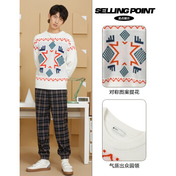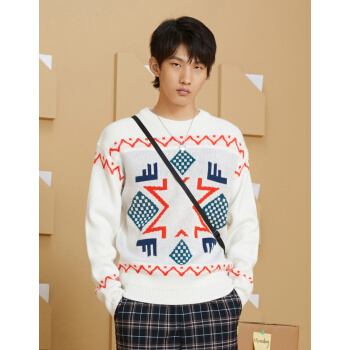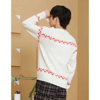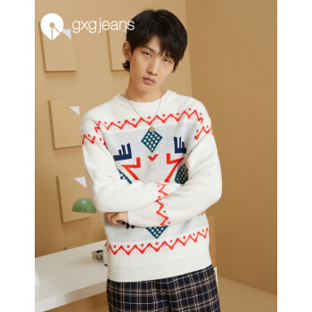 商场同款gxgjeans男装2020秋新款圆领毛衫男白色卡通上衣针织衫潮流线衫男 白色 180/XL
