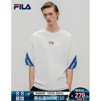 FILA 斐乐男装White Line系列官方男子针织短袖衫新款宽松短袖T男上装商场同款 标准白-WT 180/100A/XL |
