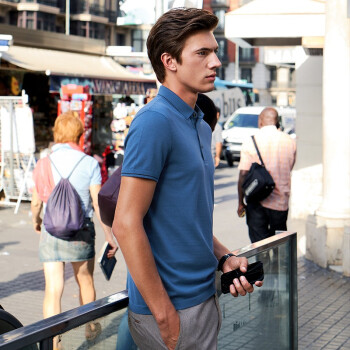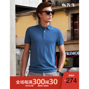 布先生 19年新款针织衫 翻领纯色经典干爽透气针织布短袖T恤男AT10550 灰蓝色 XL/180 |