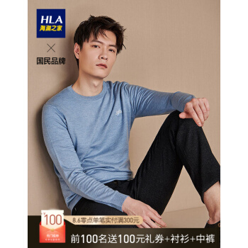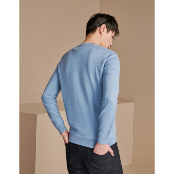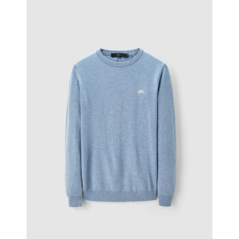 HLA海澜之家简约绣花款长袖针织衫圆领净色针织衫男HNZAD3R062A 浅蓝62 175/92A/L