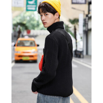 【清仓】gxgjeans男装冬季高领毛衣男潮ins黑色休闲羊毛衫韩版针织衫 黑色 180/XL