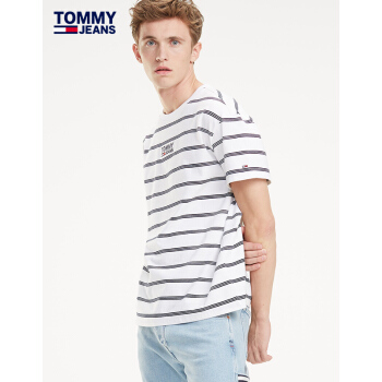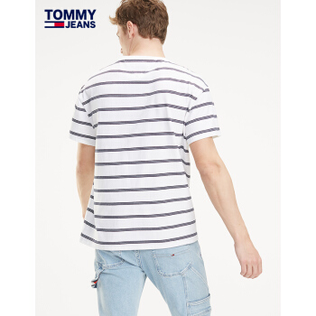 TOMMY JEANS 男装春夏短袖针织T恤(宽松版)-DM0DM06069 白色条纹100 M