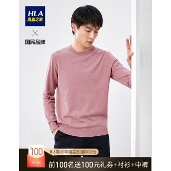 HLA海澜之家舒适圆领毛衣男柔软简约长袖针织衫HNZAD3R066A 粉红67 185/100A/XXL 刑释毛衣