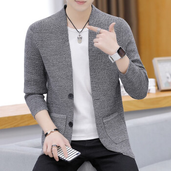 针织衫男士2020春秋季潮牌新款韩版修身休闲长袖纯色开衫毛衣潮流时尚百搭外套 Z8505 深灰色 XL