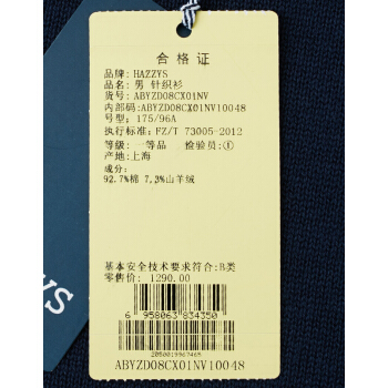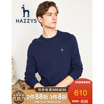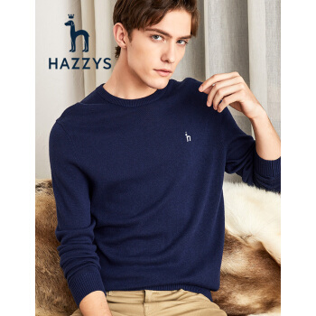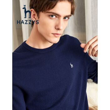 针织衫/毛衣>>【商场同款】哈吉斯HAZZYS 春秋针织衫男纯色简约百搭针织ABYZD08CX01 藏青色NV 185/104A110 52